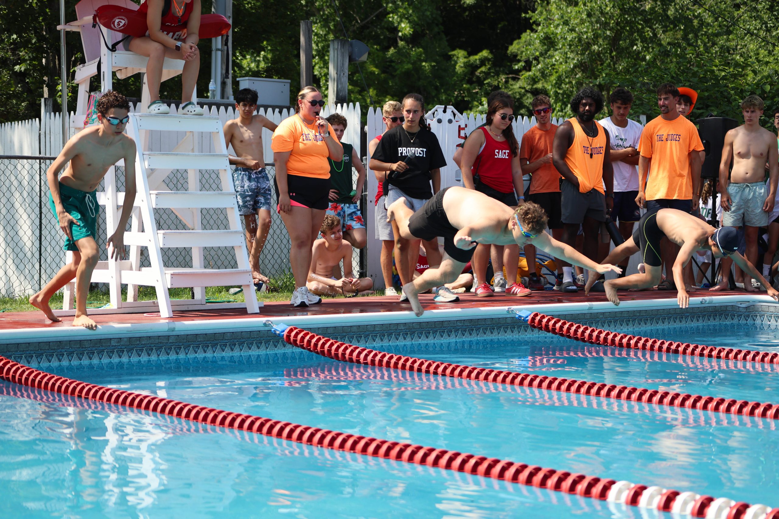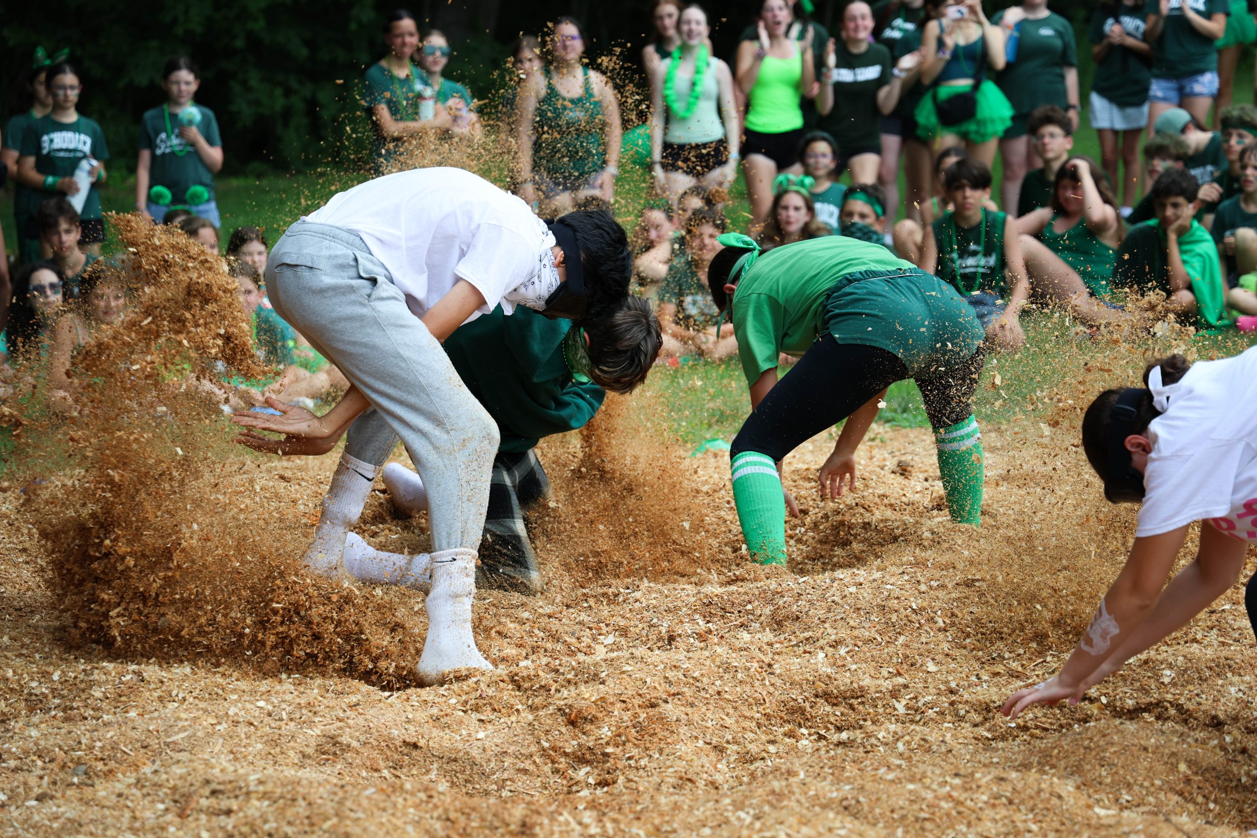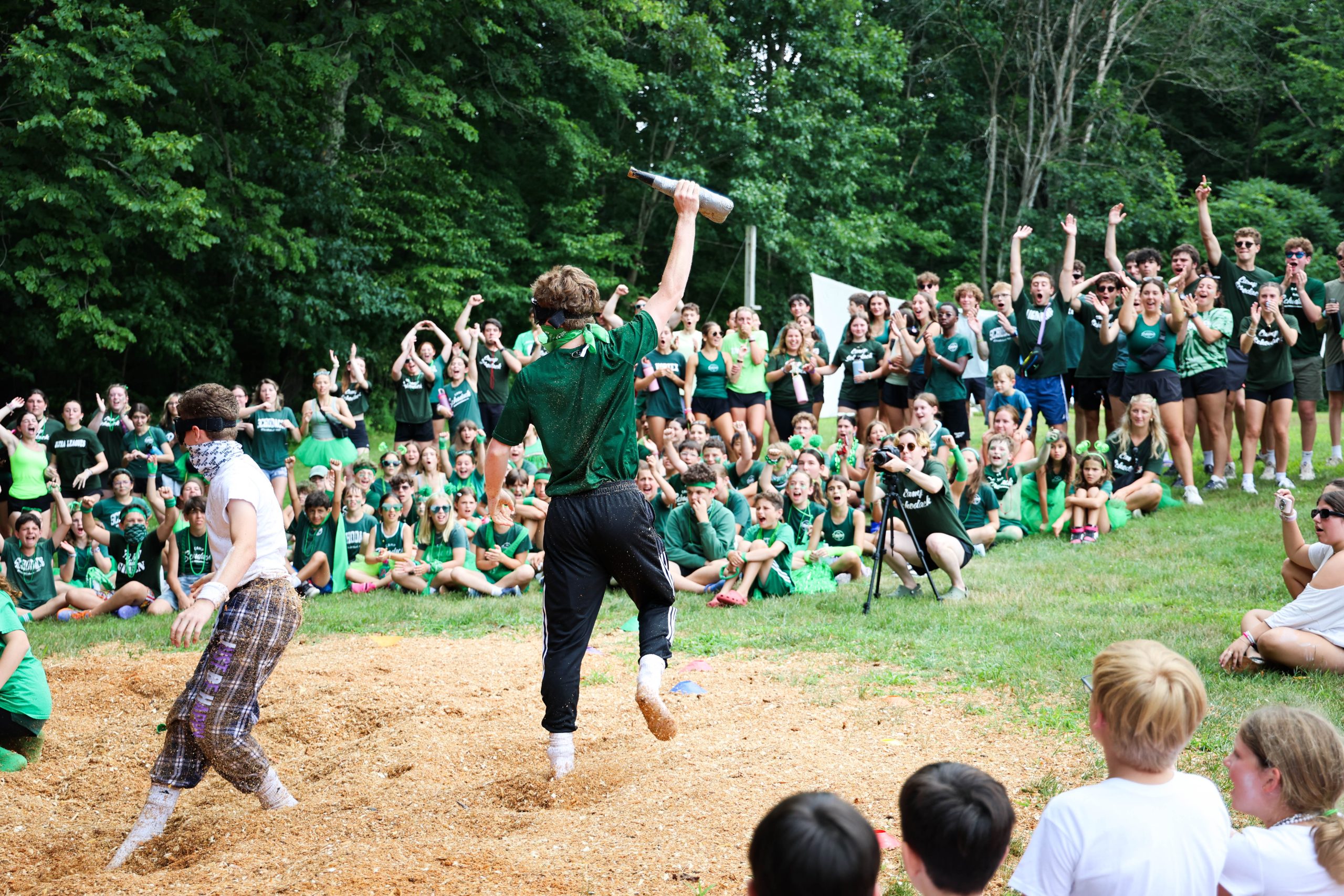 Campers competed in kickball, Football, Basketball, Steal the Bacon, gaga, lightning ball, running, and swimming medleys, and the classic Bucket Brigade. During the always-thrilling Hatchet Hunt, it was Austin Klein who made the big find, securing a key win for his team.