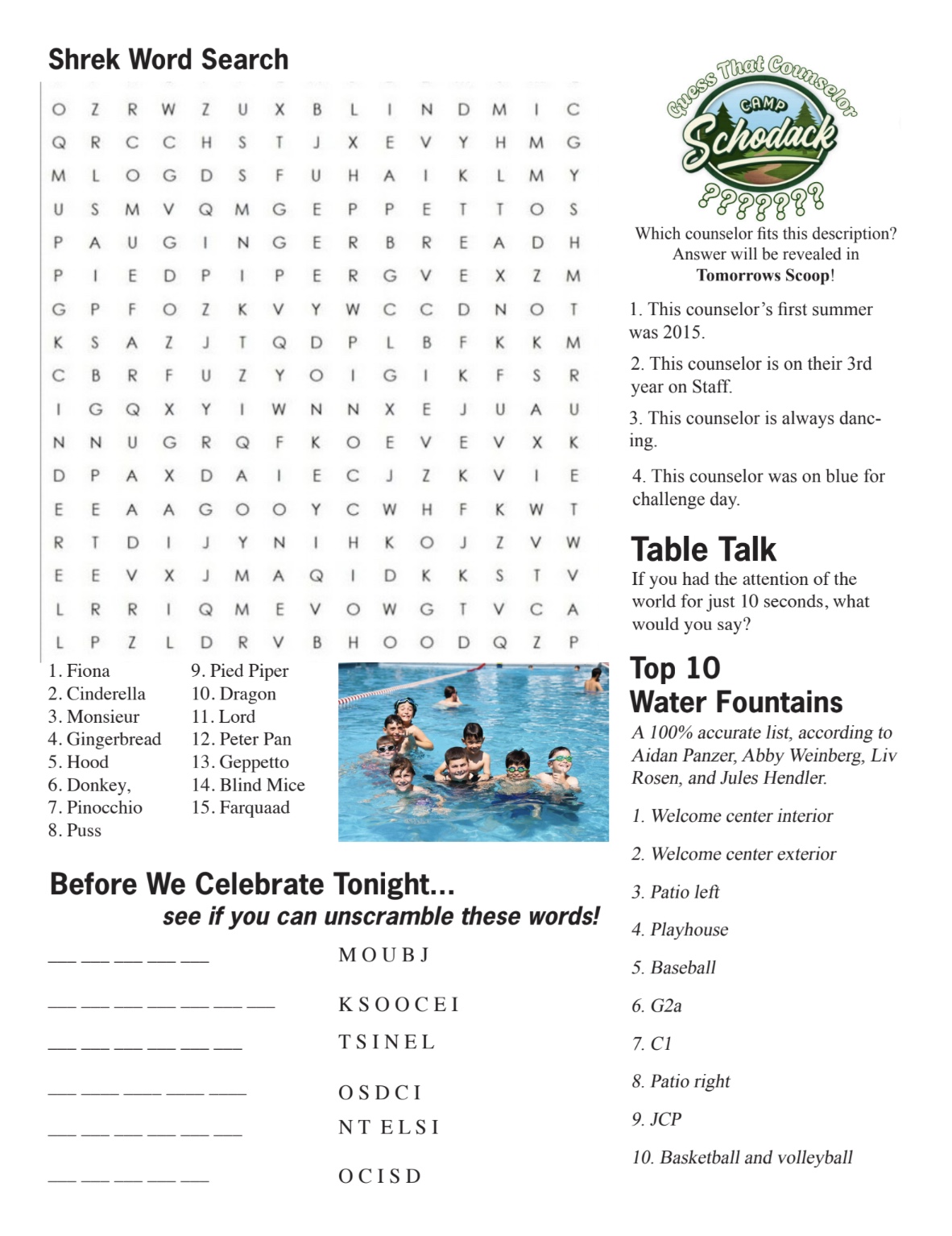 What a session this has been. I cannot even process how quickly it has gone. To all the first-session parents, thank you for sending your kids. I am going to be very upset to see them go. I hope they return with smiles on their faces, but secretly hope they are a little sad to leave behind their best summer yet. With that being said, this past week has continued with the stellar vibes. Two-day Tribals were a great deal of fun, with Green Vengeance taking the victory, but at Camp Schodack, we are all winners. The middle boys had a great time watching the new Superman movie and How to Train Your Dragon. We also had a grand old time at bowling, where they all bowled perfect games and looked very stylish in their bowling shoes. The week continued with a super exciting and competitive game of Middle Camp Assassin. They all got soaked on the wettest day ever with the giant inflatable slides. The boys are all super excited to see you this weekend, so I expect to see some giant signs with the boys’ faces. Make sure you stop by to say hi to me as well, so I can tell all of you how much they have been brushing their teeth.