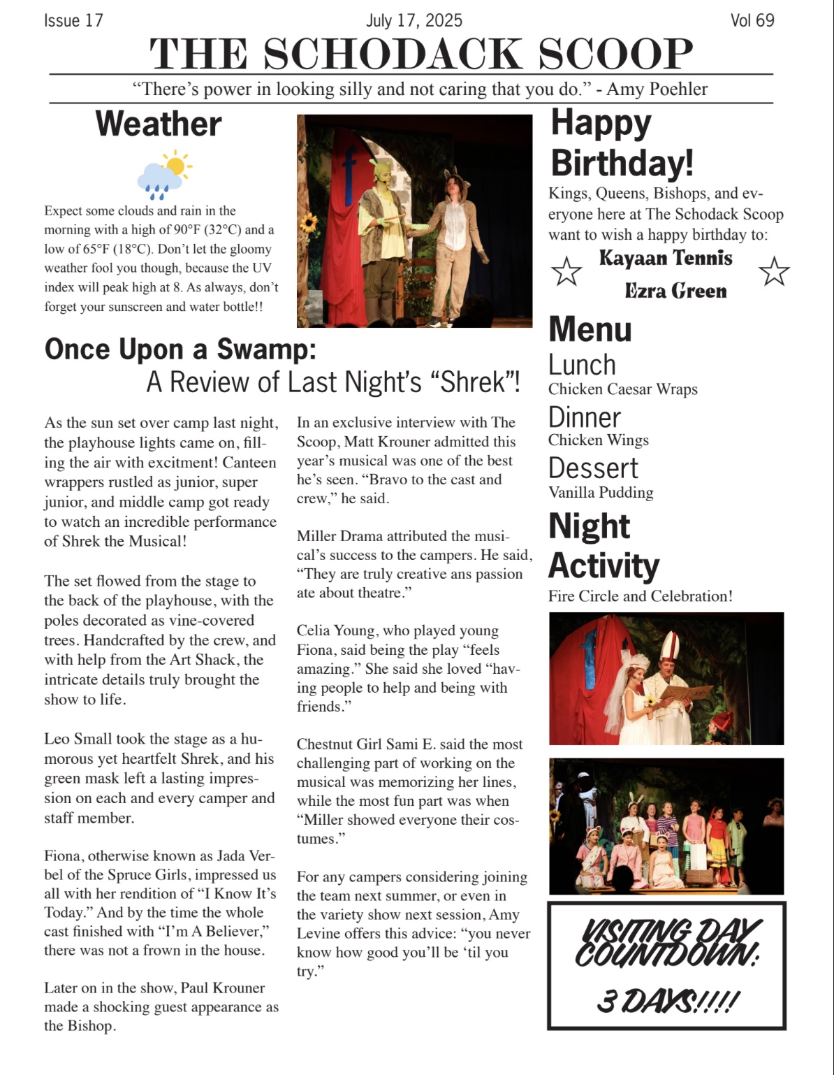 With just a few short weeks to rehearse, the cast and crew pulled off an incredible performance under the direction of our new drama counselor, Miller. The campers’ dedication and hard work were on full display, and the result was a performance that had the audience laughing and cheering.