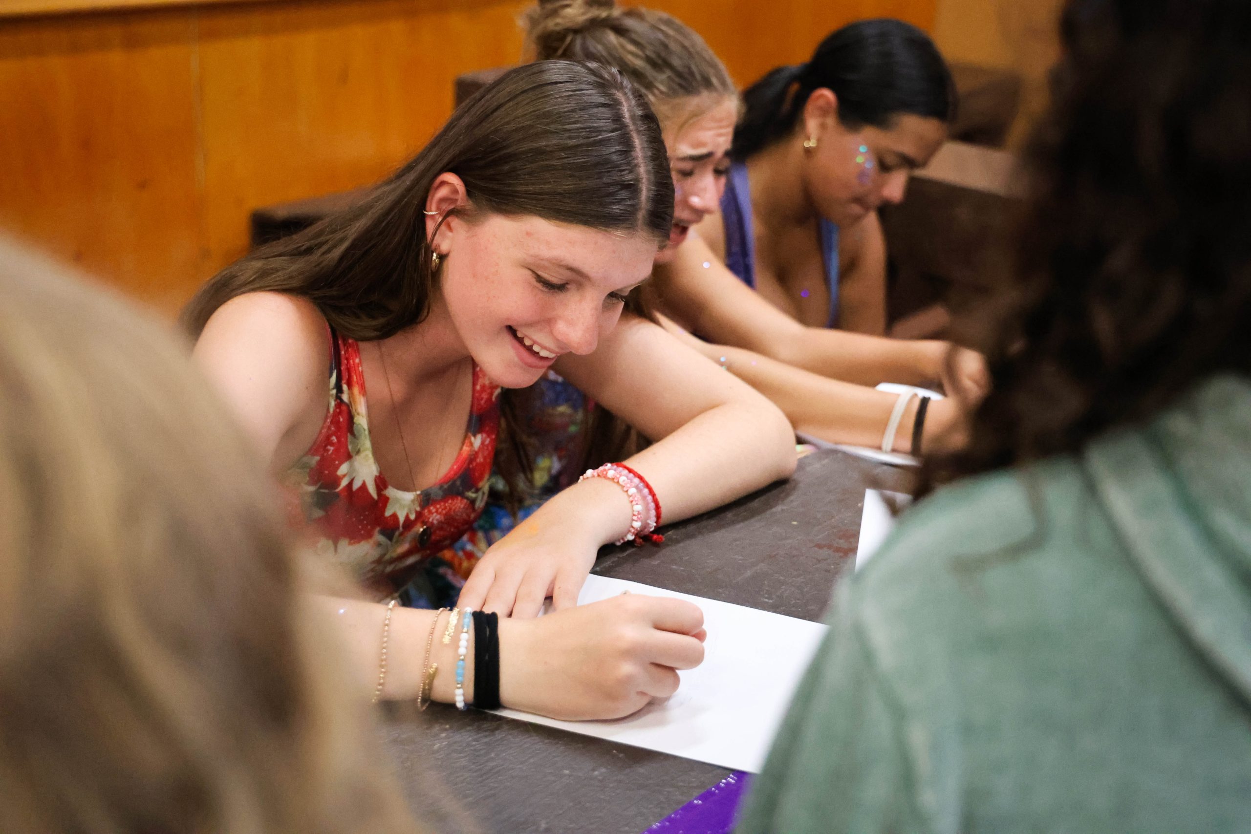 The Aspen, Balsam, and Cedar Girls are hard at work on their Bunk Plaque Night, “BPN” songs to perform in front of the whole camp this Saturday! Each bunk picks a name, rewrites lyrics to a song for their performance, and creates a custom wooden plaque that will hang in the Playhouse. The Aspen Girls are “All About Aspen,” The Balsam Girls are “Balsam Besties,” and The Cedar Girls are “Cedar Spice and Everything Nice!”